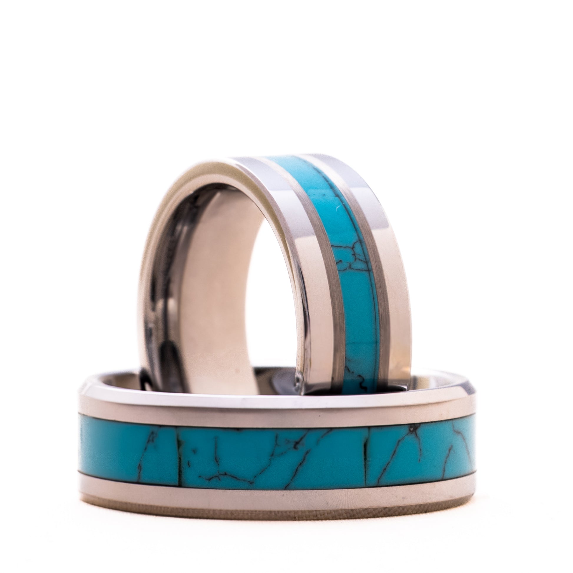 Donde el alma y el océano se encuentran. AQUA es un reflejo profundo de quienes aman con calma, con fuerza, y con verdad. Su incrustación de turquesa azul evoca las aguas cristalinas de un amor puro, sereno e infinito.