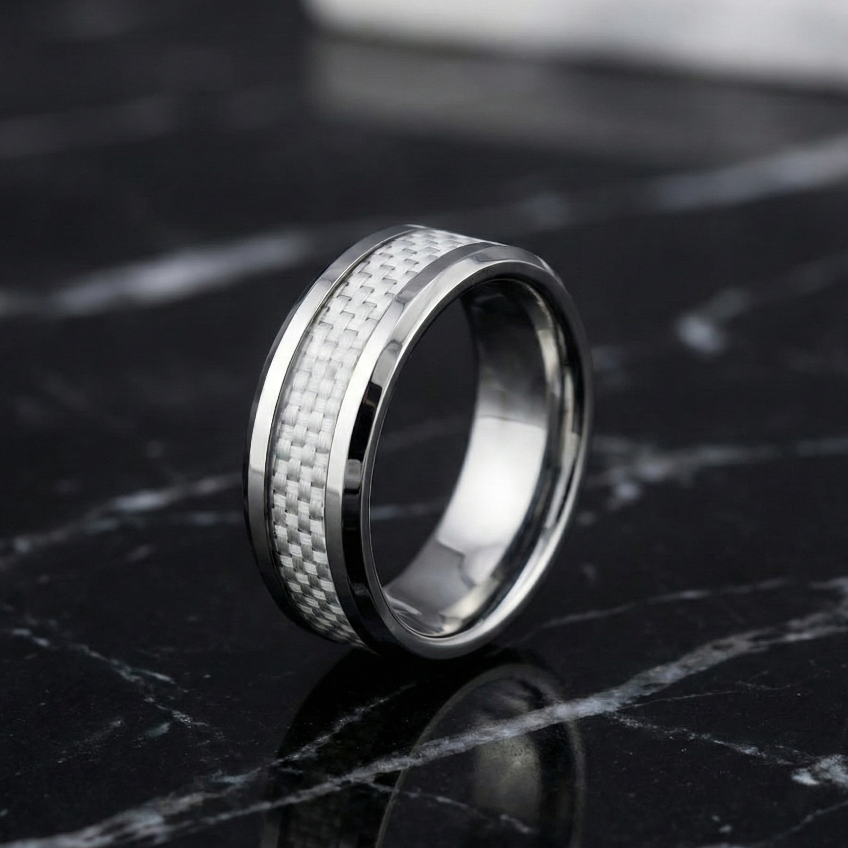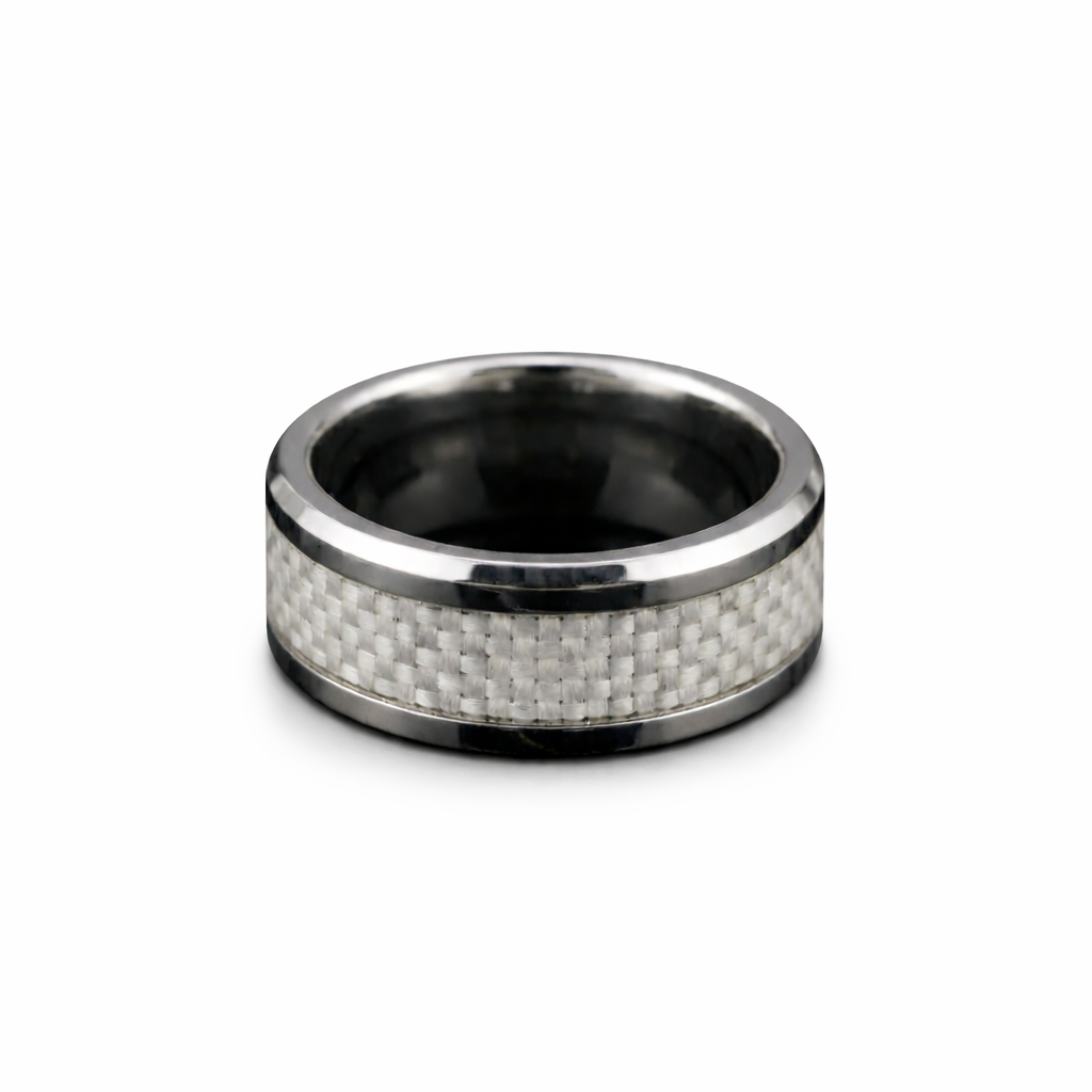 Su banda central de fibra de carbono aporta un contraste moderno y dinámico, mientras que los bordes biselados con acabado pulido reflejan la luz sutilmente, realzando cada movimiento de la mano. La comodidad de su ajuste asegura que cada día se lleve con facilidad, sin perder estilo ni carácter.