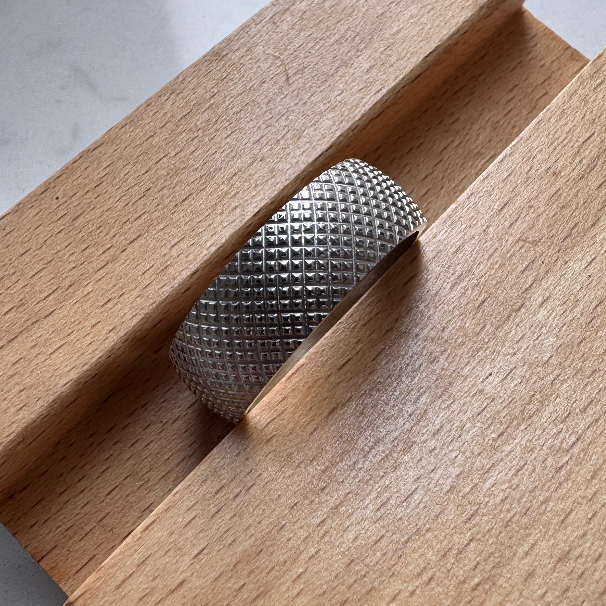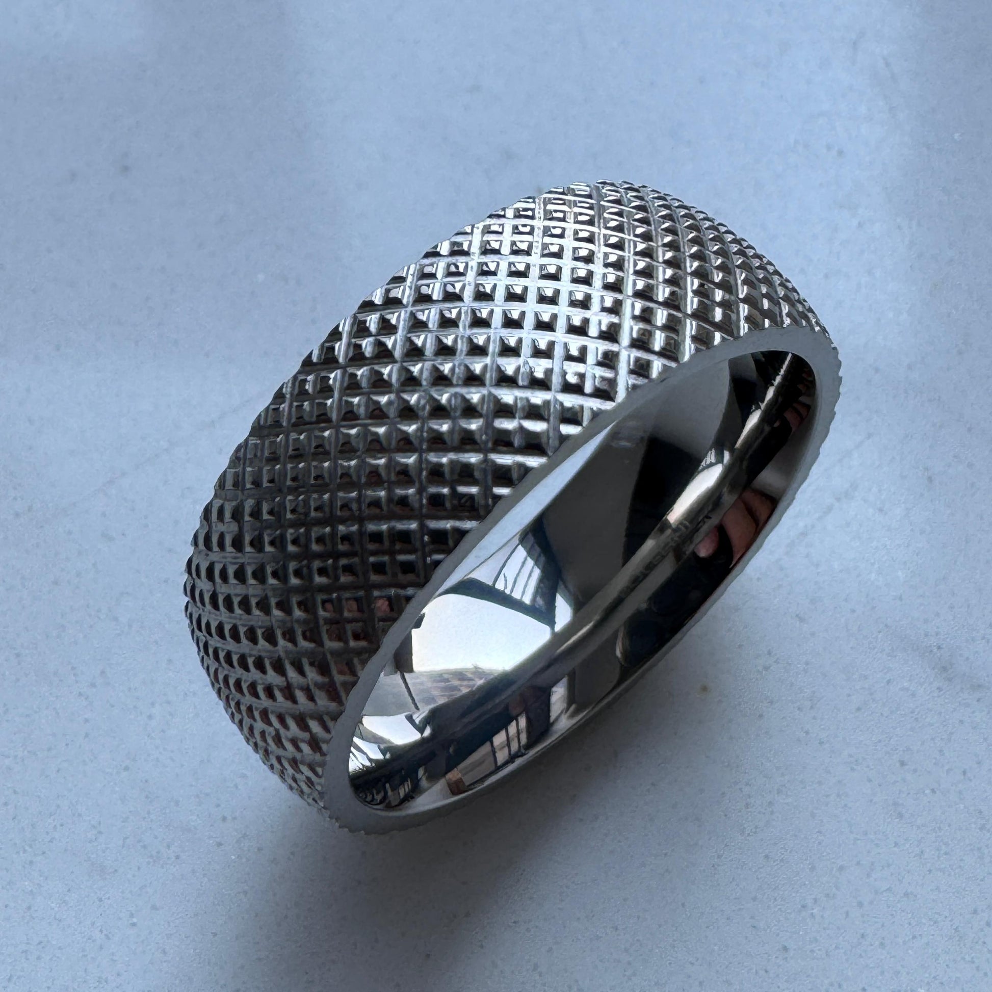 Inspirado en el espíritu de un héroe nacional, este anillo encarna el liderazgo y la fuerza de quien avanza sin rendirse. Sus relieves parecen cobrar movimiento, reflejando una elegancia majestuosa. La textura exterior combina poder y equilibrio, mientras que su corazón de titanio puro simboliza la resistencia inquebrantable que guía hasta la victoria.