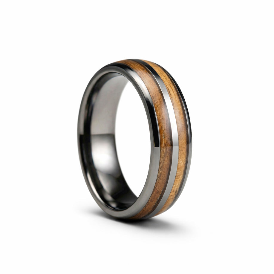 Rovere combina la resistencia del tungsteno con la calidez natural de la madera de Roble de barril de whisky añejado, creando una pieza única y sofisticada. Con un ancho de 8 mm y un acabado altamente pulido, este anillo brinda comodidad, durabilidad y un brillo elegante que resalta en cualquier ocasión.